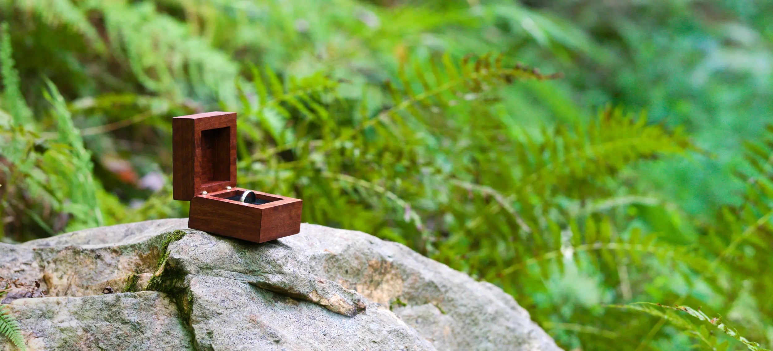 Our ring boxes are designed to be as special as the rings they hold. Each one is handcrafted from a unique, exotic wood veneer and finished with a hidden magnetic closure for a clean, satisfying feel.
